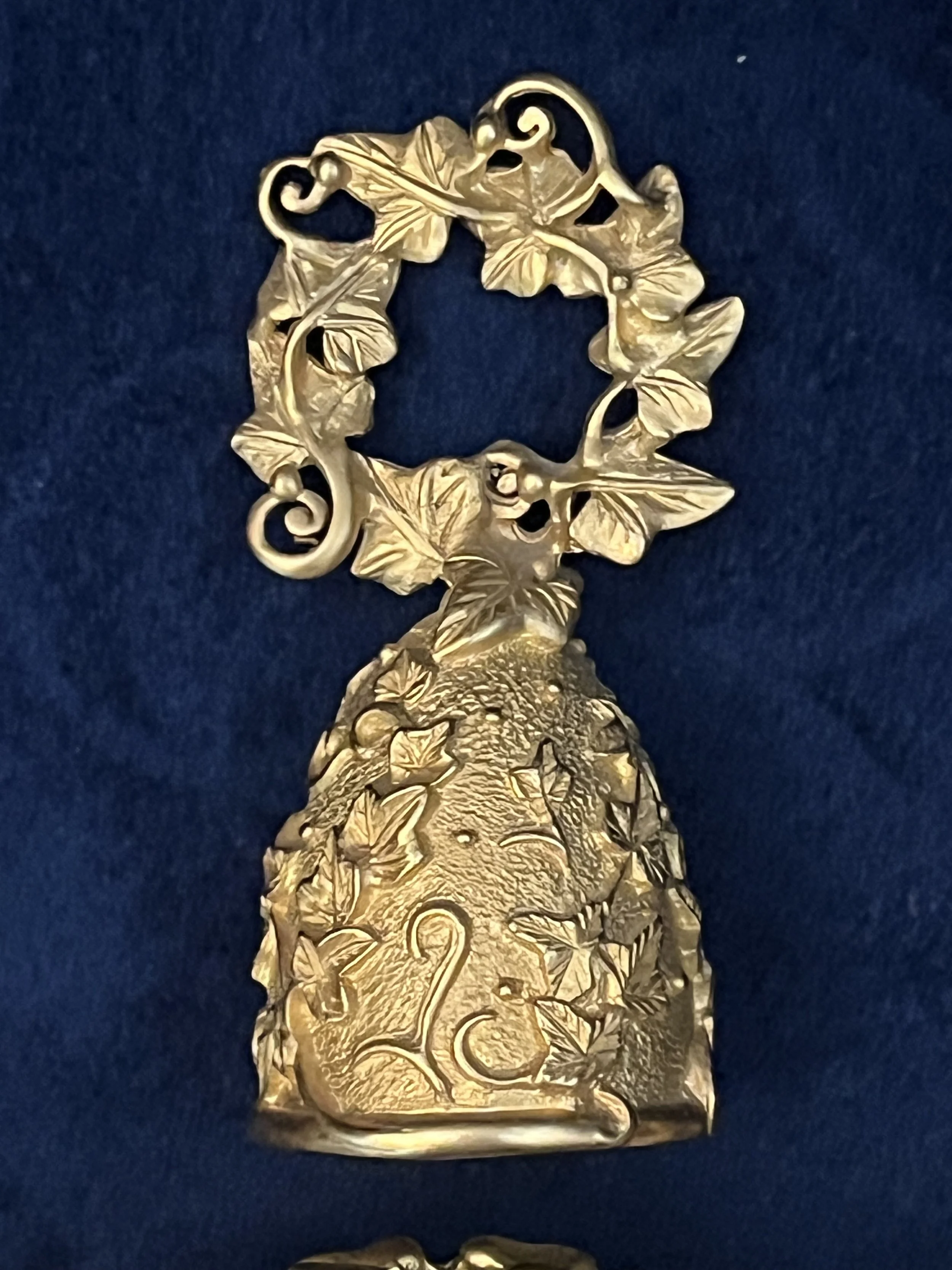 Today’s find are these gorgeous gold candle accessories by Sybarite, a line known for its extremely detailed English Ivy pattern. These are high quality cast metal pieces with a thick, textured gold tone plating. Sybarite items are sought after because they represent a specific moment in mid-century design where everyday objects were treated as pieces of art.